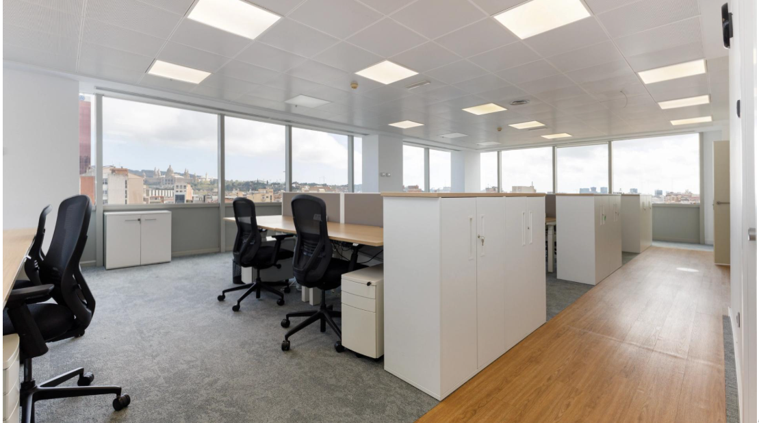 Ubicada entre Estación de Sants y Plaça España, esta oficina ubicada en la 6º planta con 275 m2, ofrece amplios espacios abiertos y flexibles, con ventanas practicables que permiten disfrutar de una de las mejores vistas de la ciudad.